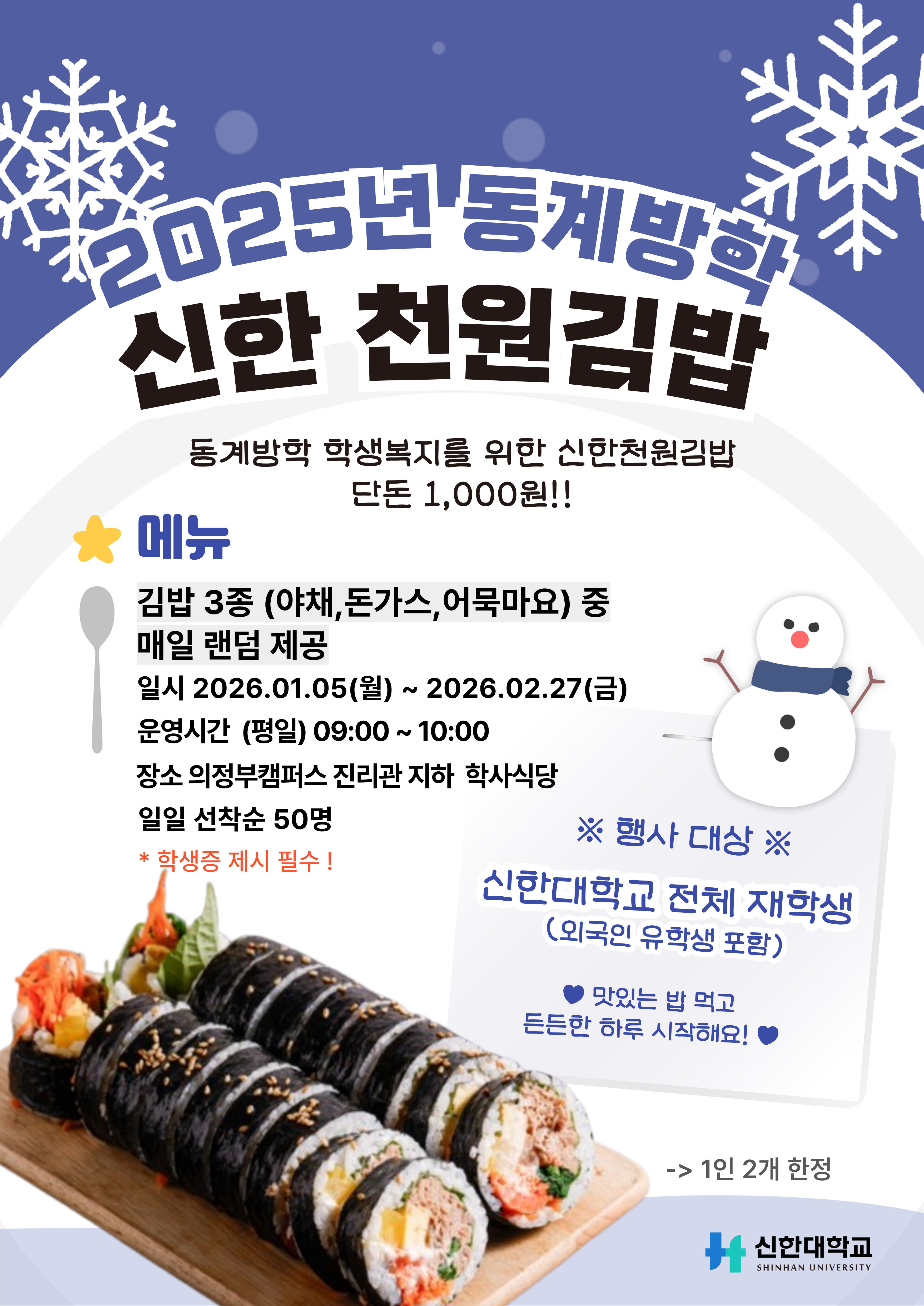 2025학년도 동계방학 '신한 천원김밥' 사업 안내